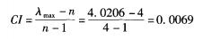 所以CR=CI /RI=0.0069/0.89=0.0077,由于CR=0.0077<0.10,故檢驗(yàn)合格,判斷矩陣賦值合理。
