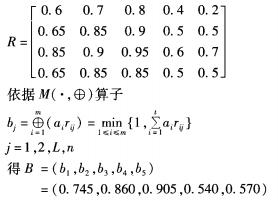 (5)確定模糊綜合評(píng)價(jià)的模型,采用第M(?,⊙)算子模糊合成算子[3]將矩陣進(jìn)行模糊變換,得到評(píng)價(jià)對(duì)象的評(píng)價(jià)向量B