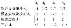 對(duì)五大類(lèi)按AHP層次分析法)規(guī)定的5級(jí)標(biāo)準(zhǔn),進(jìn)行成對(duì)比較,列出一個(gè)4x4的判斷矩陣。