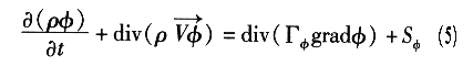 煙氣流動場模擬的控制方程組包括連續(xù)性方程、動量方程、能量方程、組分方程、紊流動能方程和紊流動能耗散率方程,所有這些方程都滿足下列通用形式的方程:
