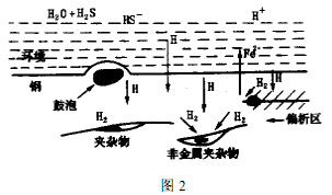 ?。?)介質(zhì): 氫鼓泡主要發(fā)生在硫化氫的酸性水溶液中, 隨硫化氫濃度增大, 出現(xiàn)裂紋的傾向增大。