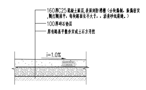 本工程大墅鎮(zhèn)桃源凌家精品果園進(jìn)站道路,位于淳楊線K40+300處,進(jìn)站道路路口(喇叭口)寬10m,標(biāo)準(zhǔn)路段寬6m。路基原有素土平整夯實(shí)或土石方開(kāi)挖;基層采用碎石墊層,路面采用C25混凝土路面。