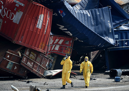 在安全驗(yàn)收報告中,總計179項驗(yàn)收內(nèi)容,共19項不合格,3項部分合格。最終安評報告列出的隱患整改意見多達(dá)24項。包括“企業(yè)沒有指定特種設(shè)備專項應(yīng)急救援預(yù)案,建議企業(yè)應(yīng)該完善”“集裝箱堆場各類貨品的相互距離不符合規(guī)范要求”“沒有設(shè)置防爆型叉車”等等。