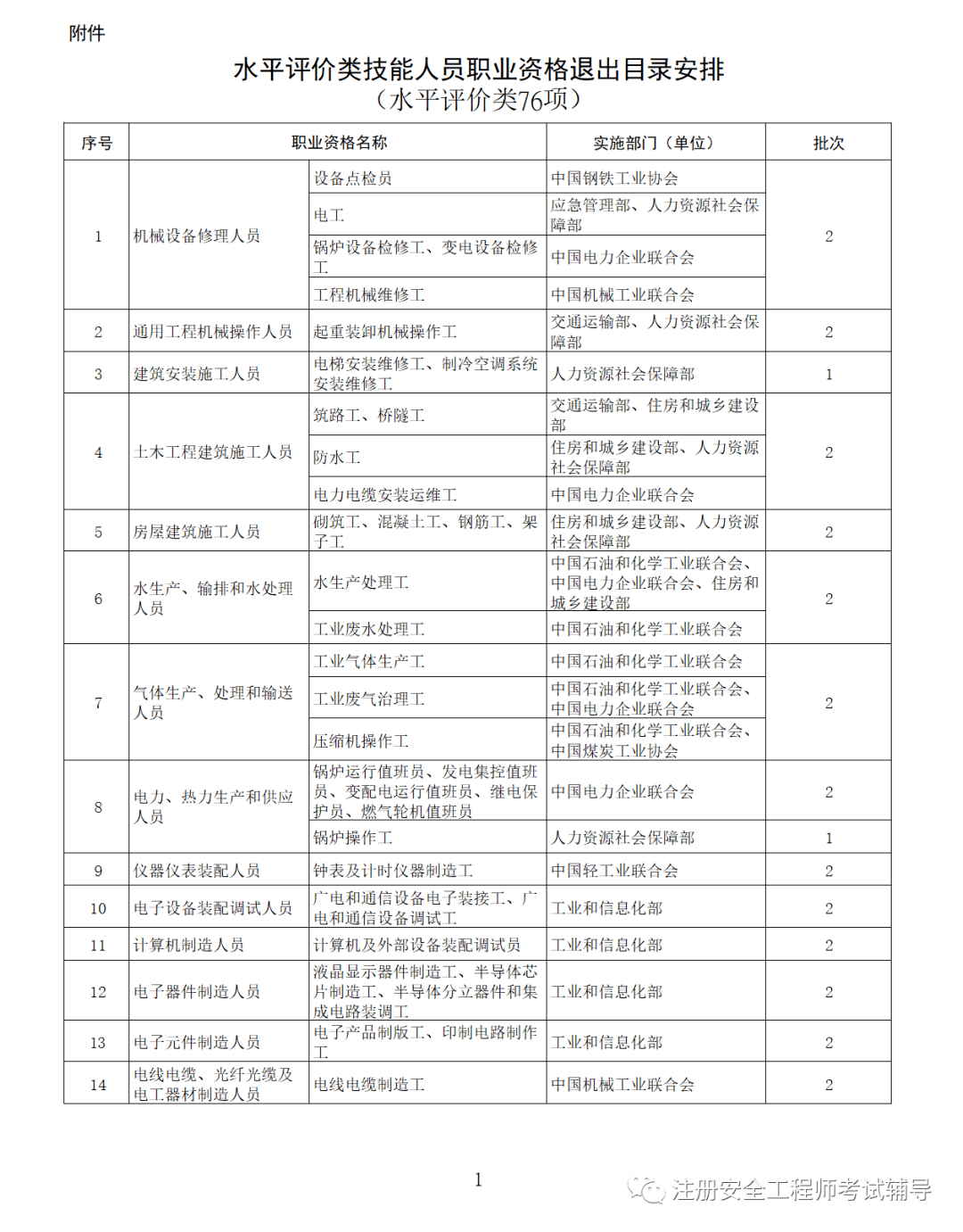 為貫徹落實(shí)2019年12月30日國(guó)務(wù)院常務(wù)會(huì)議精神,擬分批將水平評(píng)價(jià)類技能人員職業(yè)資格退出目錄,其中:人力資源社會(huì)保障部門和有關(guān)部門組織實(shí)施的14項(xiàng)職業(yè)資格(涉及29個(gè)職業(yè))擬于9月30日前第一批退出;其他部門(單位)組織實(shí)施的66項(xiàng)職業(yè)資格(涉及156個(gè)職業(yè))擬于12月31日前第二批退出;與公共安全、人身健康等密切相關(guān)的職業(yè)(工種)擬依法調(diào)整為準(zhǔn)入類職業(yè)資格(具體安排詳見(jiàn)附件)。