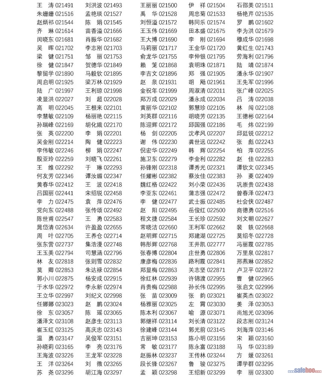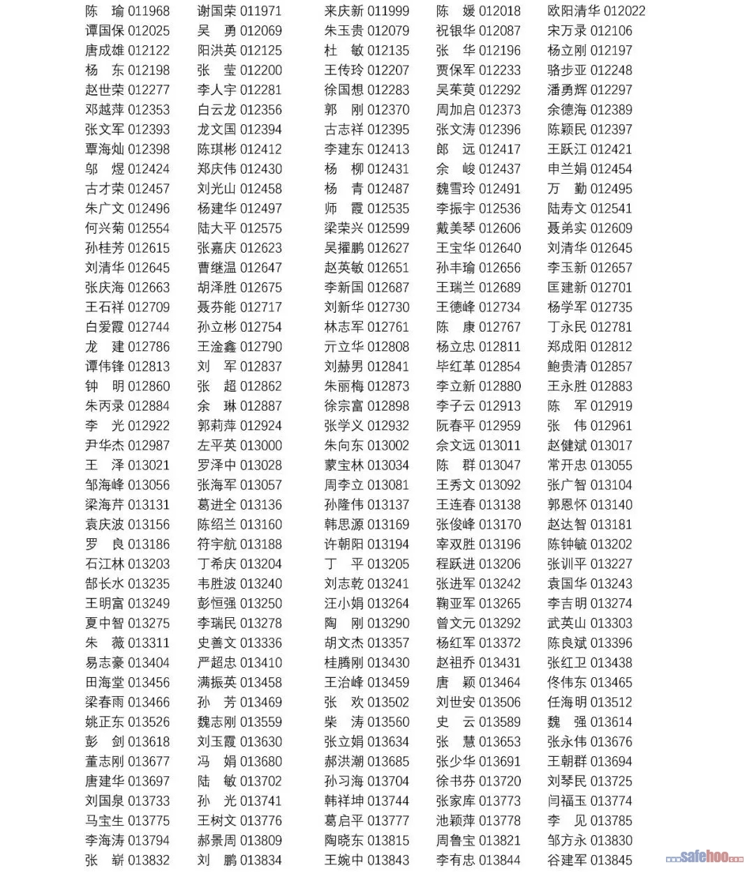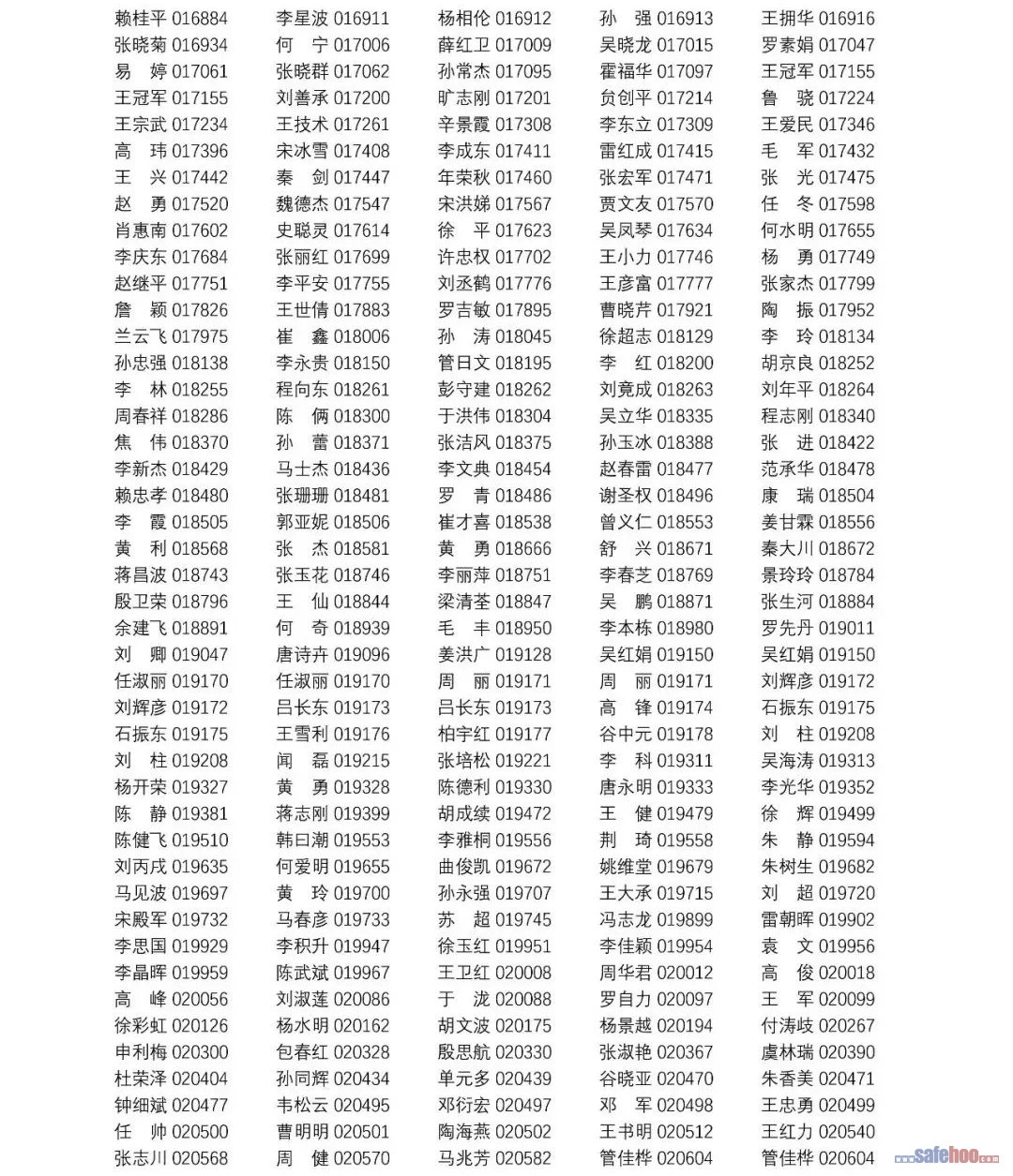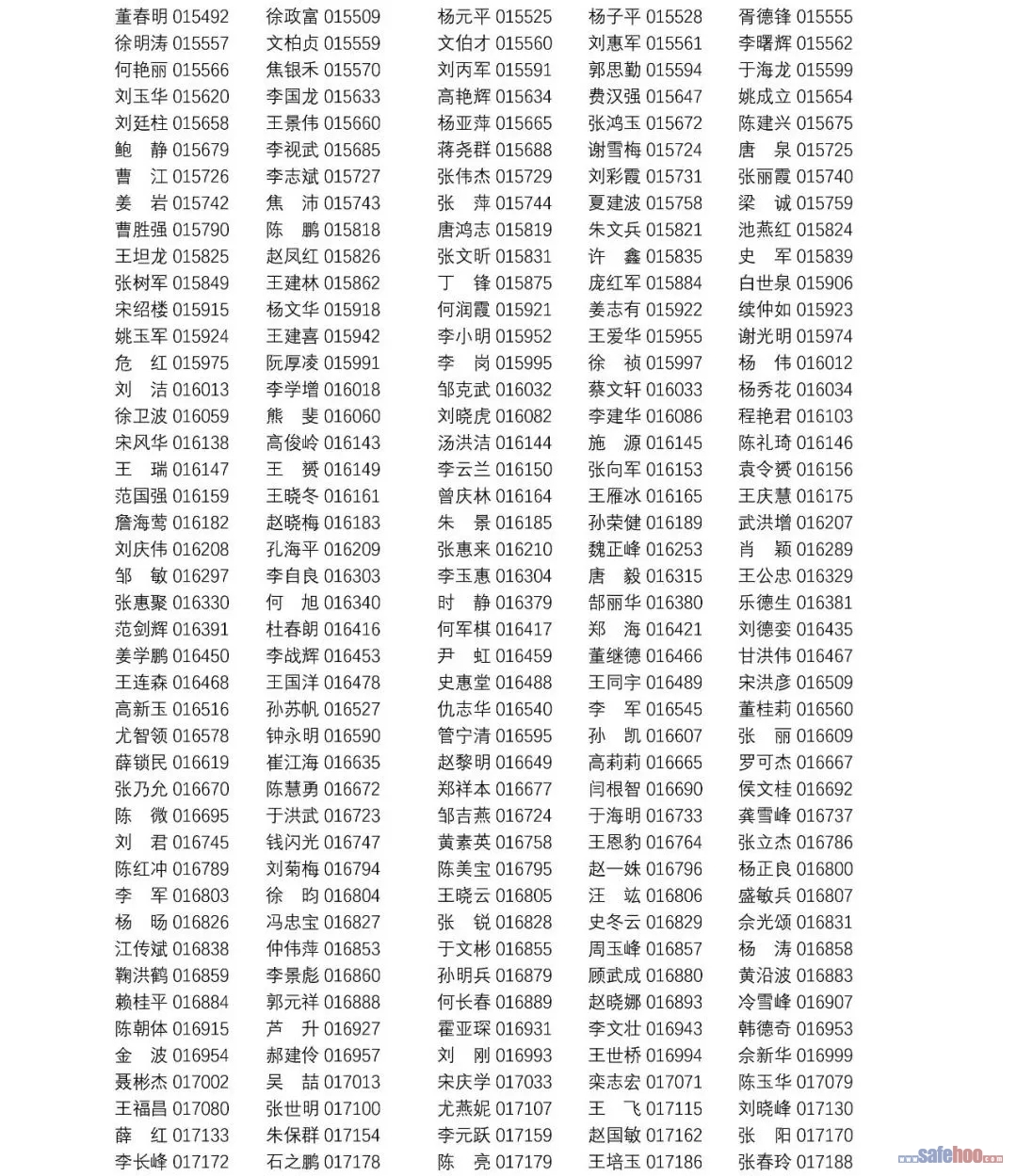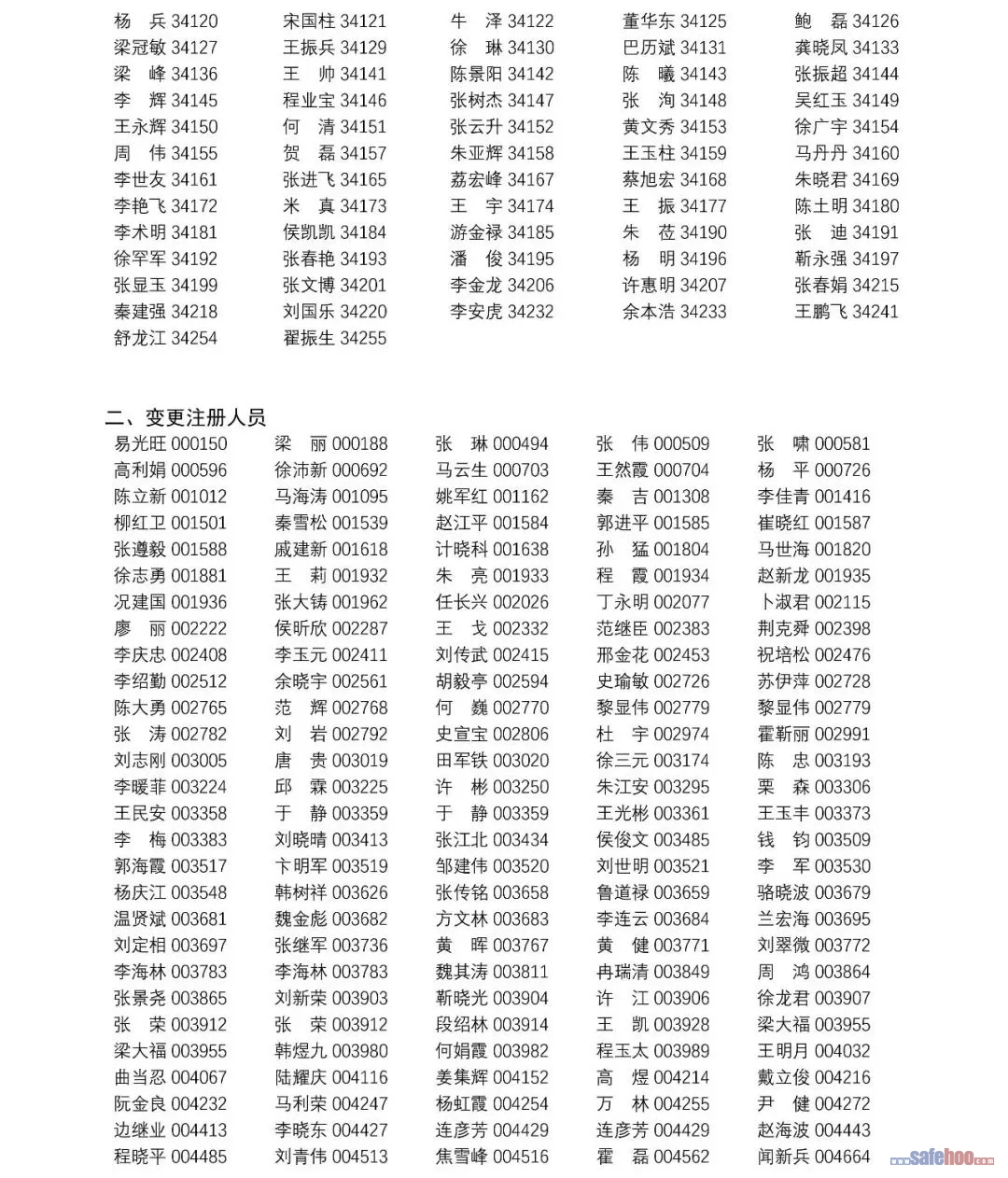 以上公告信息為安全評價師從業(yè)注冊人員姓名+從業(yè)編號,可在中國安全生產(chǎn)協(xié)會網(wǎng)站安全評價師信息查詢欄目中查詢(http://cydj.5anquan.com/UILogin/BeforeUserInfoSearch)。
