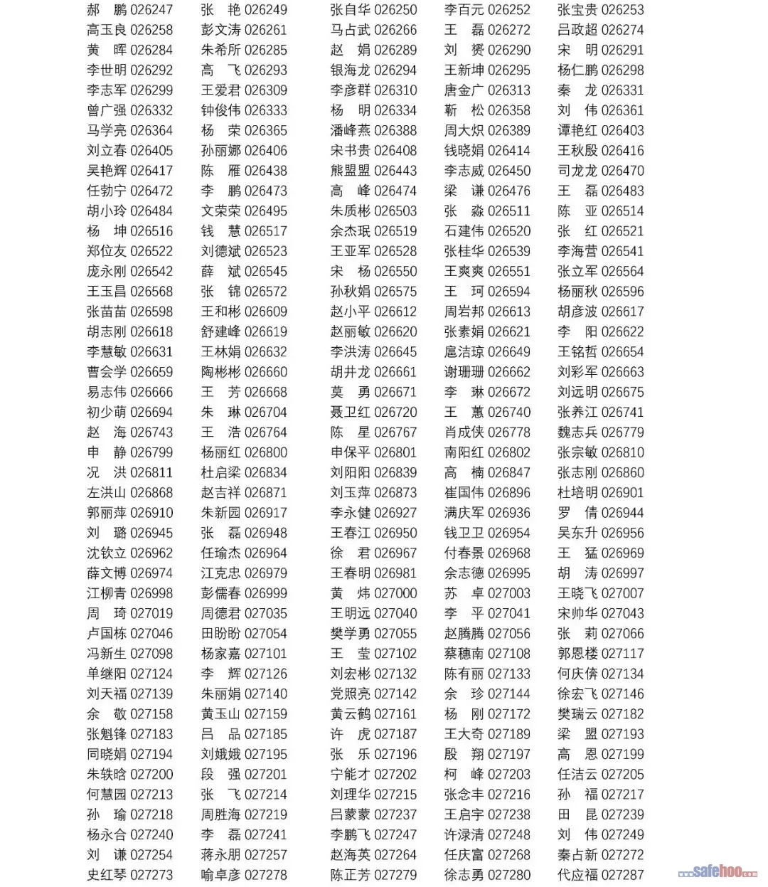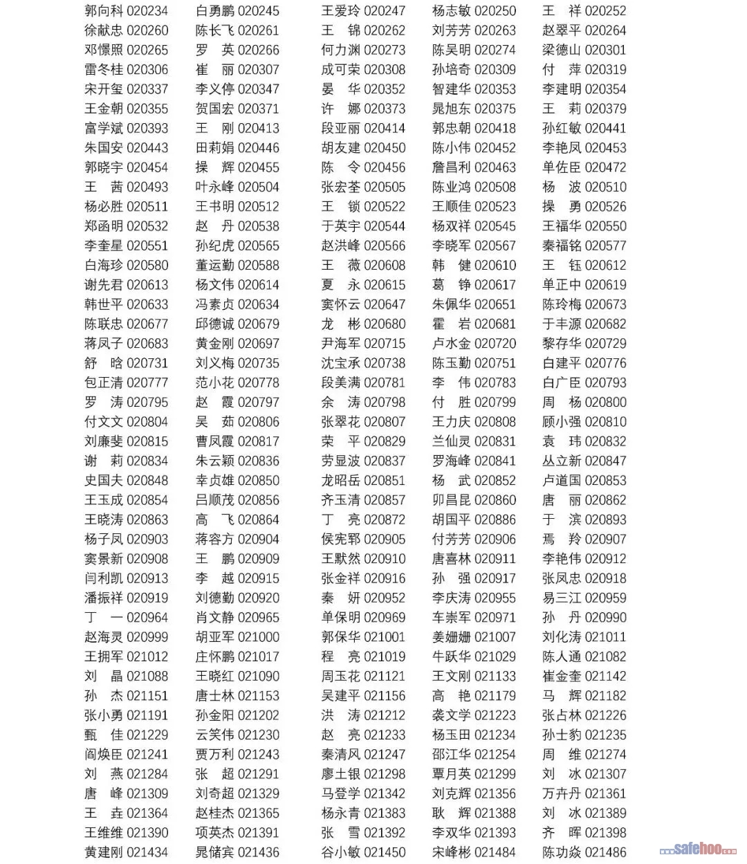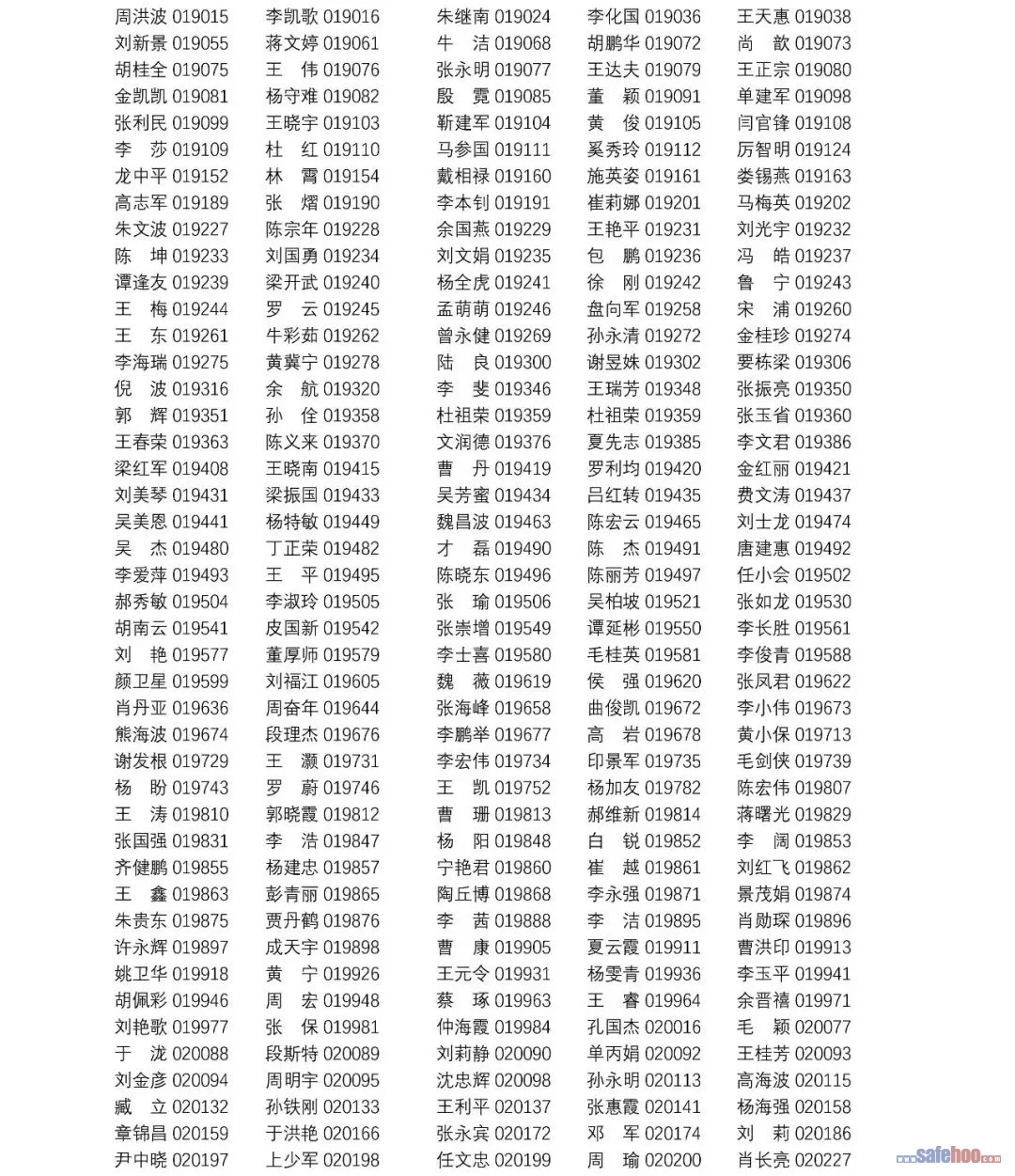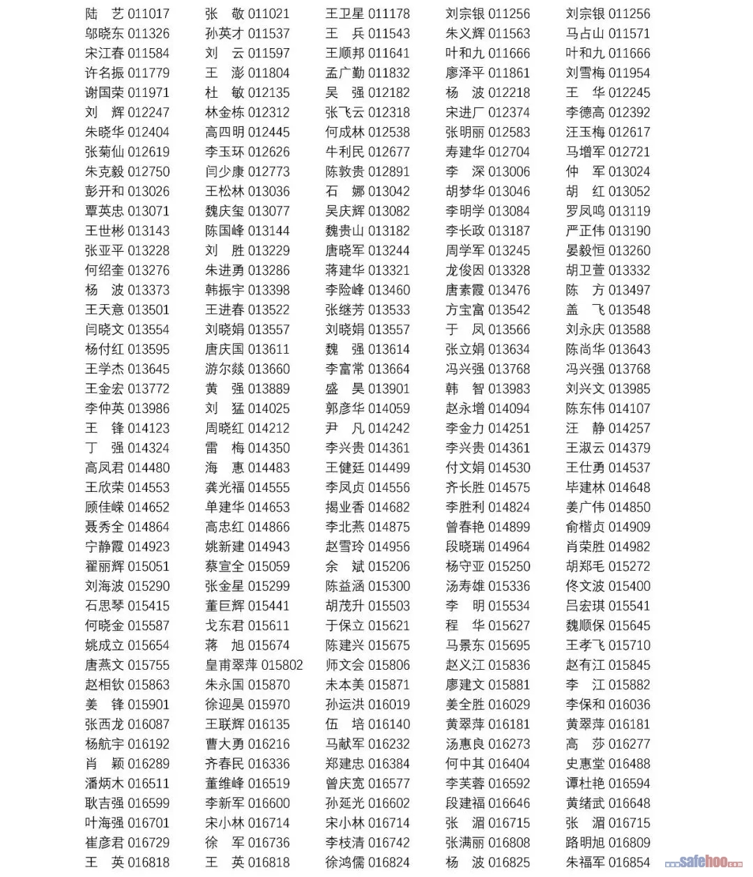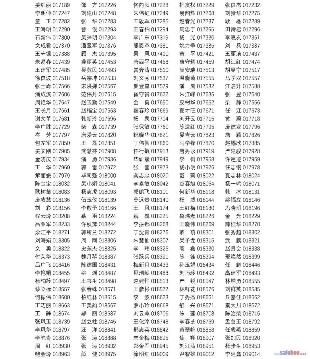 以上公告信息為安全評價師從業(yè)注冊人員姓名+從業(yè)編號,可在中國安全生產(chǎn)協(xié)會網(wǎng)站安全評價師信息查詢欄目中查詢(http://cydj.5anquan.com/UILogin/BeforeUserInfoSearch)。