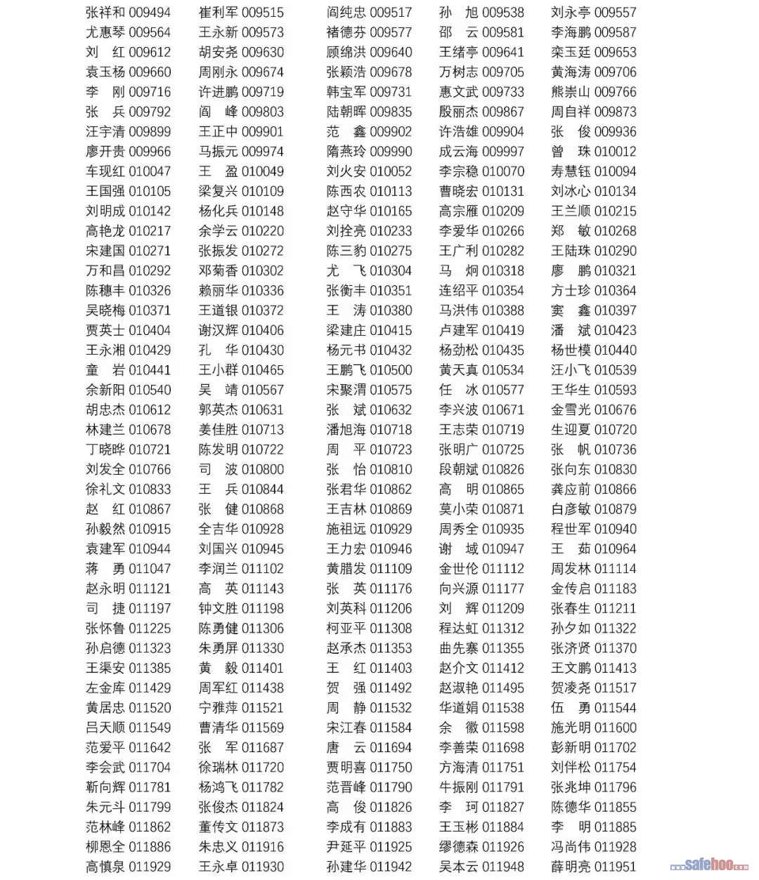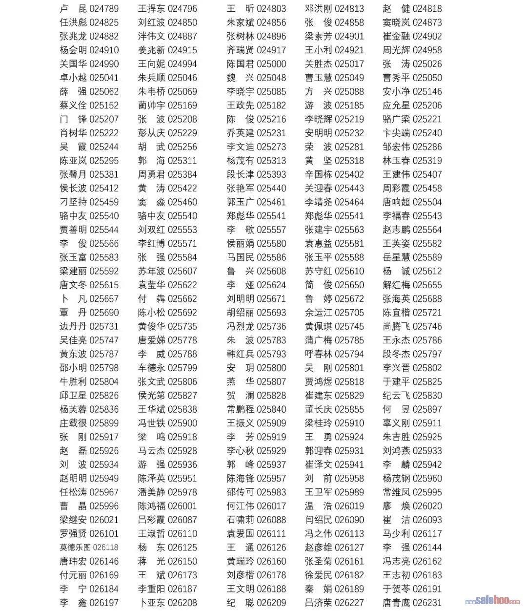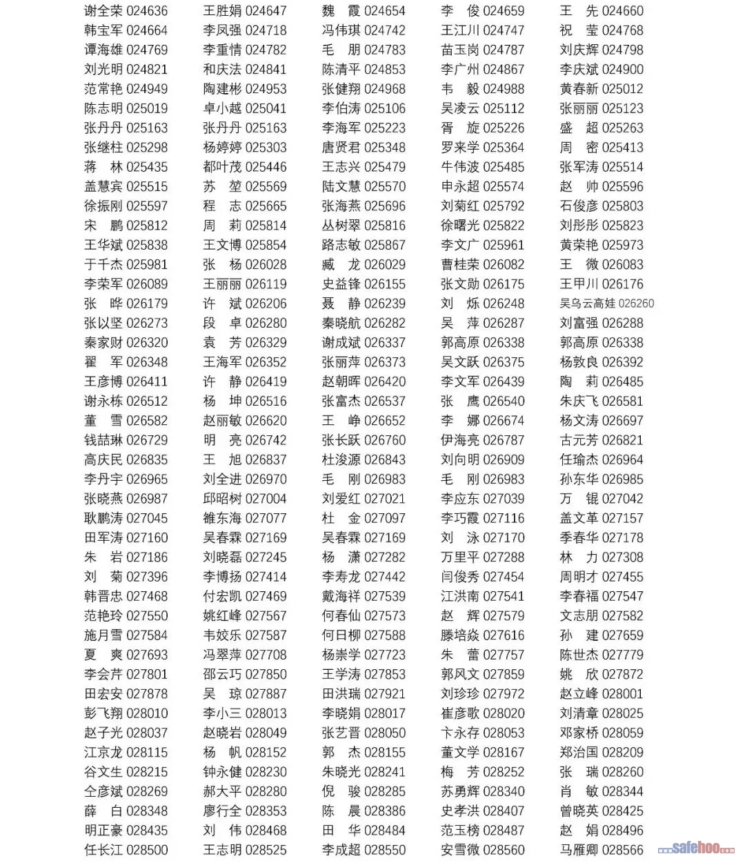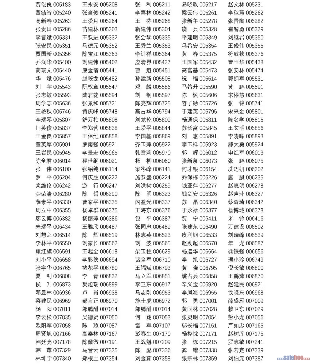 以上公告信息為安全評價師從業(yè)注冊人員姓名+從業(yè)編號,可在中國安全生產(chǎn)協(xié)會網(wǎng)站安全評價師信息查詢欄目中查詢(http://cydj.5anquan.com/UILogin/BeforeUserInfoSearch)。