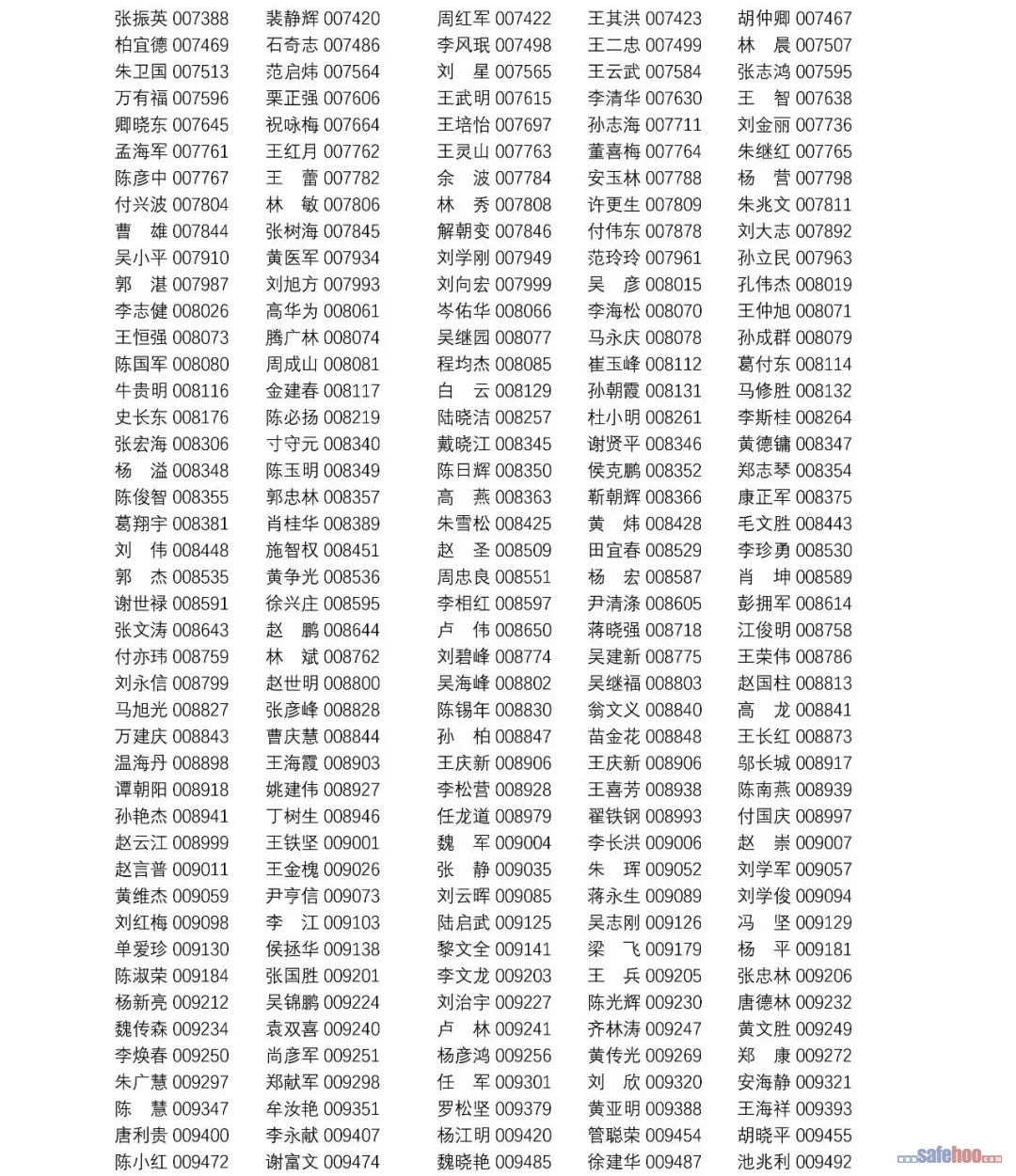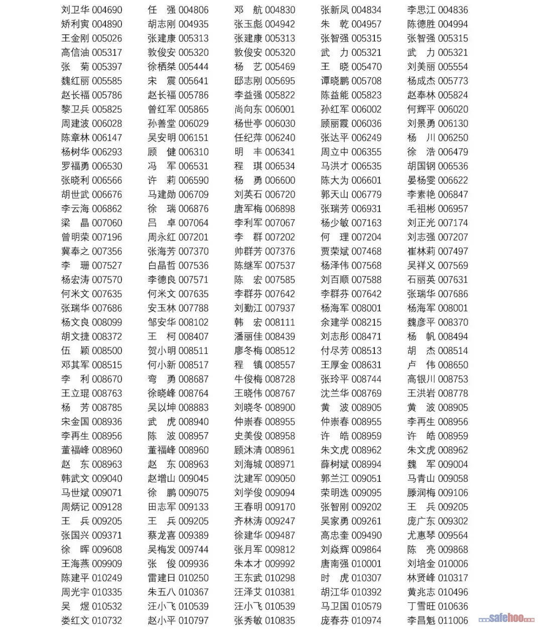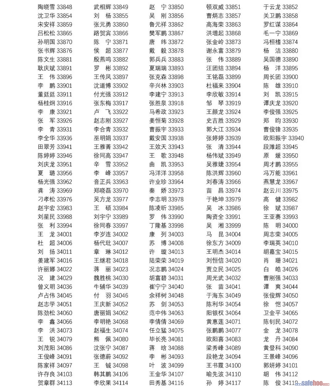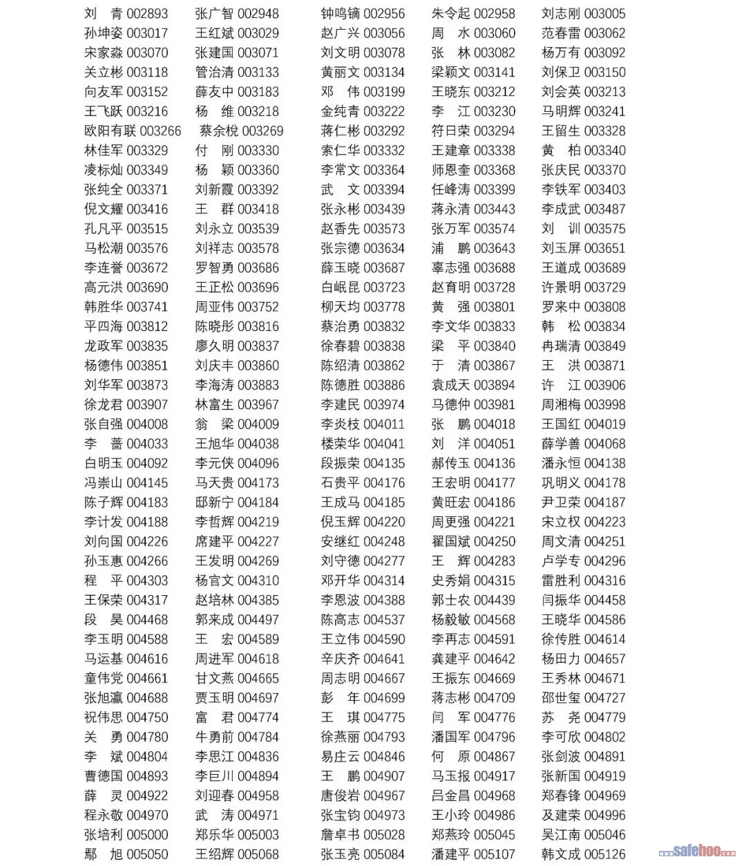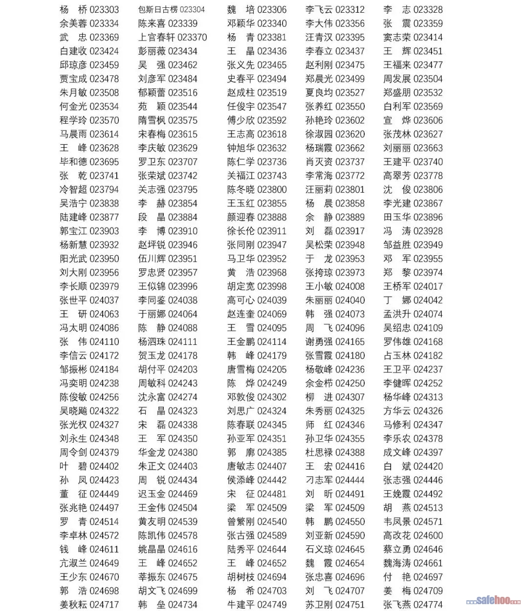 以上公告信息為安全評價師從業(yè)注冊人員姓名+從業(yè)編號,可在中國安全生產(chǎn)協(xié)會網(wǎng)站安全評價師信息查詢欄目中查詢(http://cydj.5anquan.com/UILogin/BeforeUserInfoSearch)。