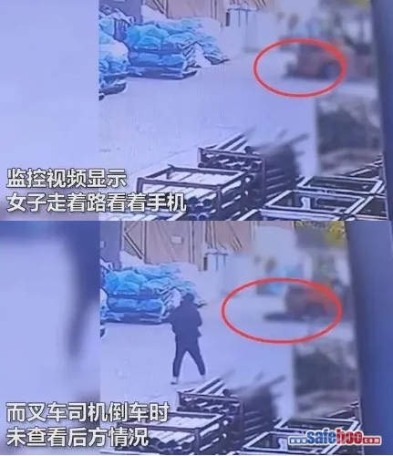 事故二:近日,在某廠區(qū)內(nèi),一輛正在運(yùn)送貨物的叉車撞倒一名正準(zhǔn)備穿越路口的員工,致該員工死亡。步行的員工在拐彎處沒有提前觀察兩邊有沒有過往車輛,只顧低頭看手機(jī)(另外一段現(xiàn)場視頻顯示,事故發(fā)生后,手機(jī)就在逝者的手旁),造成了這起慘劇的發(fā)生。