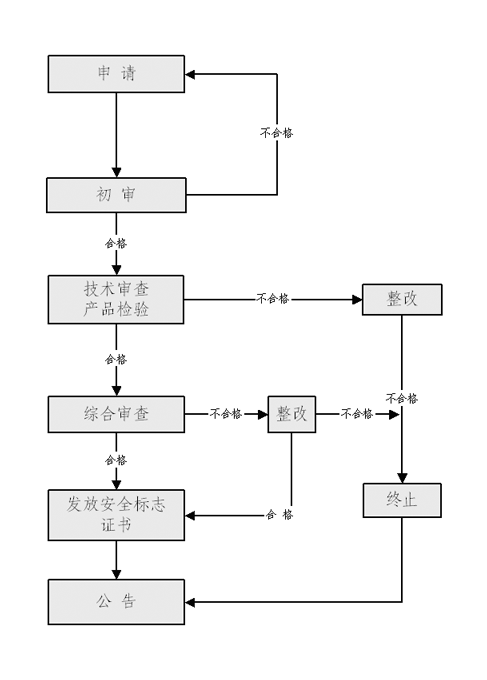已定型產(chǎn)品或安全標(biāo)志有效期滿需換證的產(chǎn)品申辦安全標(biāo)志的程序,主要包括:申請(qǐng)、技術(shù)審查、現(xiàn)場(chǎng)評(píng)審、產(chǎn)品抽樣檢驗(yàn)、綜合審查。符合條件的,發(fā)放有效期為2~4年的安全標(biāo)志證書。
