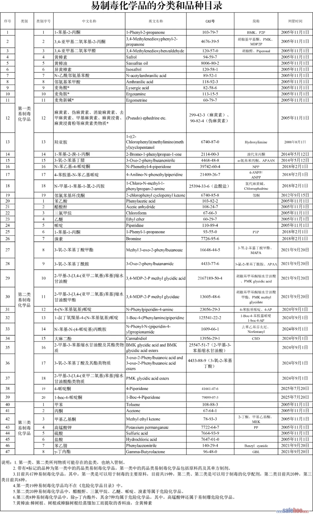 易制毒化學(xué)品的分類和品種目錄