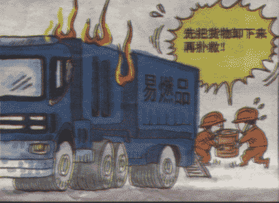 2、火勢危及車上易燃物品時,應先把物品卸下。如果是貨物著火,也應先把貨物卸下?lián)渚取S土现饡r,嚴禁潑水撲救;如果是酒精、酒類著火,可用水潑救。