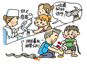 支招:不管你的寵物是多么乖巧可愛(ài),千萬(wàn)不要把他們單獨(dú)和孩子放在一起,平時(shí)要教育兒童少接近動(dòng)物,不要隨便逗著玩;外出遇見(jiàn)狗時(shí),要盡可能離狗遠(yuǎn)一些,更不可以上前挑逗狗,接觸其他的一些動(dòng)物時(shí),要保持安全距離,以免被抓傷咬傷;不管被狗咬得傷勢(shì)是否嚴(yán)重,家長(zhǎng)都應(yīng)立刻帶孩子到防疫部門注射狂犬疫苗;被毒蛇咬傷后,首先要用冷水沖洗傷口,邊沖洗邊把毒血擠出來(lái),然后在傷口的上方、近心臟位置,用帶子扎起來(lái),然后迅速送醫(yī)院。