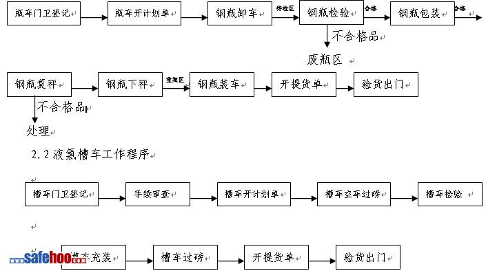 6.2.1液氯包裝人員應(yīng)穿戴相應(yīng)的勞保用品,嚴(yán)格按照《工藝安全操作規(guī)程》或者物品標(biāo)明的裝車方法進(jìn)行,確保裝車過程中操作安全。