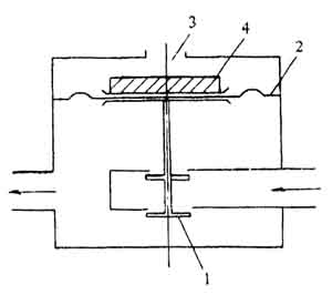 燃?xì)饬髁空{(diào)節(jié)器的構(gòu)造示于圖3—10—8。其作用原理如下:當(dāng)燃?xì)饬髁砍^調(diào)定值時(shí),孔板產(chǎn)生的壓差增大,薄膜上下負(fù)荷變化而向下移動(dòng),閥口燃?xì)饬魍娣e減小,從而使燃?xì)饬髁炕謴?fù)至調(diào)定值。