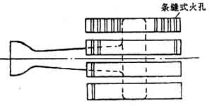 如前述,頭部結(jié)構(gòu)有多火孔和單火孔。它們的設(shè)計(jì)計(jì)算均以保證穩(wěn)定燃燒為原則。一個(gè)合理設(shè)計(jì)的頭部,必須使火焰不出現(xiàn)離焰、回火和黃焰,井使火焰特性滿足加熱工藝的需要。
