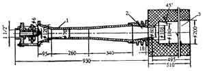 圖3—6—23為引射式單火道無焰燃燒器,它由引射器、噴頭及火道組成。高(中)壓燃氣從噴嘴流出,依靠燃氣的能量吸入燃燒所需的全部空氣,并在引射器內(nèi)進行混合。混合均勻的燃氣一空氣混合物,經(jīng)噴頭進入火道,在熾熱的火道壁面和高溫回流煙氣的穩(wěn)焰作用下進行燃燒。完全預(yù)混燃燒的空氣過剩系數(shù)。為1.05~1.10。噴頭是保證燃燒工作穩(wěn)定、防止回火的重要部件。噴頭常做成漸縮形,收縮角為25°左右,且內(nèi)壁加工光滑,從而使噴口混合氣體的速度場達到均勻分布。為了降低噴口處可燃混合物的火焰?zhèn)鞑ニ俣?,防止回火,熱負荷大的噴頭常采用空氣或水冷卻(圖3—6—24)。在火道式完全預(yù)混燃燒器中,可燃混合物的加熱、著火和燃燒均在火道內(nèi)進行。混合物進入火道時,由于突然擴大,在火道入口處形成了高溫煙氣回流區(qū)(圖3—6—25)。回流煙氣不僅將混合物加熱,同時也是一個穩(wěn)定的點火源。火道由耐火材料做成,它近似于一個絕熱的燃燒室,使進入火道的燃氣一空氣混合物立刻進行燃燒,從而保證了較高的燃燒熱強度和燃燒溫度。因而,火道是使燃燒穩(wěn)定,防止脫火的重要部件。這種燃燒器用于高(中)壓燃氣的燃燒上。