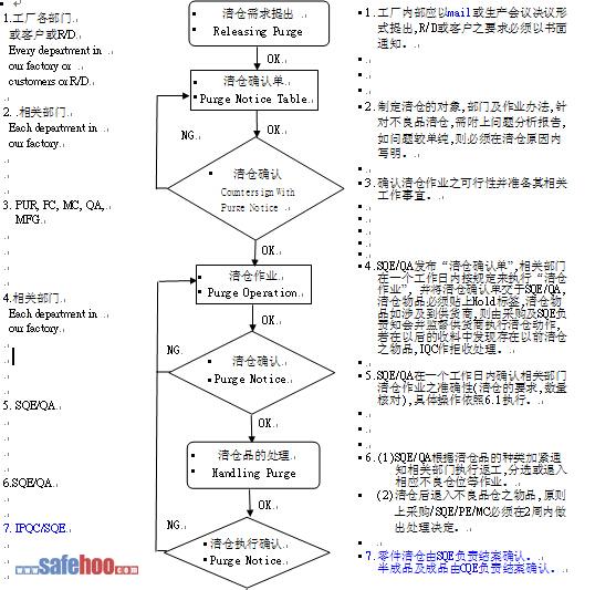 6.1.5各責(zé)任部門在發(fā)出清倉確認(rèn)單需詳細(xì)說明清倉原因、范圍及對策,以利問題之處置。