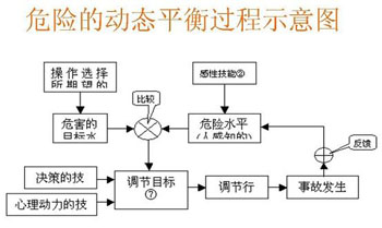 例如,當危險動態(tài)平衡理論應用到道路交通情況時,假定在單位時間內(nèi)道路使用者的交通事故率是固定在一個閉合循環(huán)控制過程中的結果,在這個過程中的危險的目標水平就是惟一的可控制的變量。因此,與臨時浮動相對比,按時間平均的事故風險不與某些因素相關(如車輛本身的特征、道路環(huán)境和操作者的技術熟練程度等),而最終還是取決于道路使用人群對事故危險可接受的水平,這個水平是他們從汽車的一般性活動(如開車多的經(jīng)歷)以及與特殊的活動有關的特殊危險性操作(如超速車開得很好)中所察覺到的好處得到的。在任何一個時候,一個車輛駕駛人員利用他的察覺技能,察覺到有一定危險水平的事故,于是與他們愿意接受的事故危險水平相比較,這種情況是合理的。愿意接受的水平是通過所選活動所獲得的利益與所預期的耗費之間取代平衡的方式而確定的。因此,這個目標危險水平應被認為是所有使用的方式和活動量都達到了最大的限度時的危險水平。而預期的耗費和利益與經(jīng)濟、文化和與個人有關的變量相關,也與它們長期的、短期的和時時刻刻的浮動相關,這些效果在任何特殊的瞬間都會控制著危險的目標水平。不論何時,道路使用者察覺到目標危險和經(jīng)驗危險在方向和其他方面不符合時,就會通過某些操作,試圖恢復這種平衡。這種平衡能否成功,取決于個人所做的決定和心理動力的技能。但是所采用的任何動作都可能帶來一定的事故危險。如在一個地區(qū)范圍內(nèi),道路使用者在一定期間(如一年)所采取的全部行動決定了他在該地區(qū)所發(fā)生的交通事故的嚴重程度和頻率。假定這個事故率影響(通過反饋)到存活者察覺事故危害的水平,并由此影響了他們隨后的活動與發(fā)生的事故等,那么只要目標危險水平?jīng)]有改變,在循環(huán)的因果關系鏈內(nèi),事故的損失和行為的謹慎程度總是彼此相互制約的。