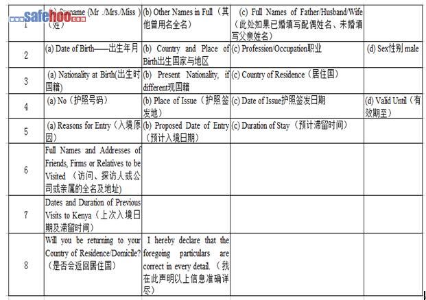 下表是入境表格的詳細(xì)選項(xiàng)示例