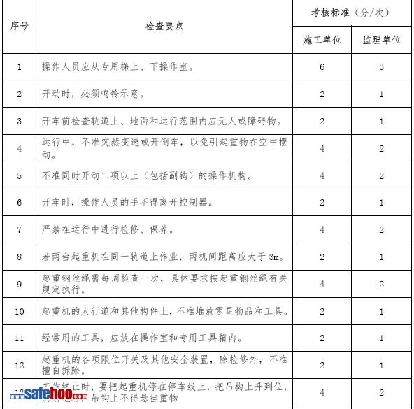 橋式起重機(jī)施工安全考核表