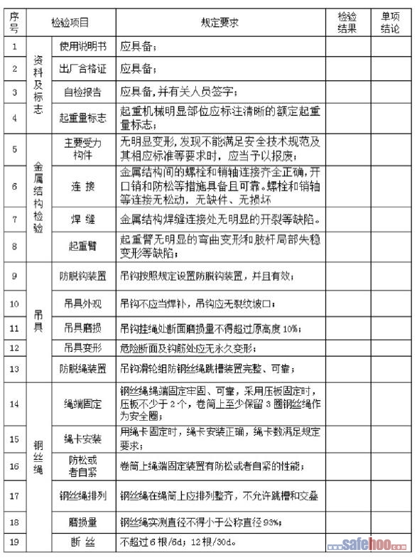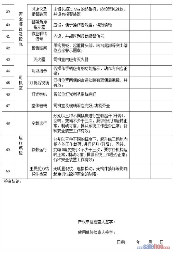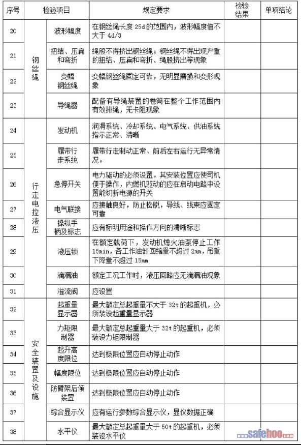 流動(dòng)式起重機(jī)械(履帶吊)檢查表
