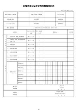 內(nèi)墻磚面粘貼檢驗批質(zhì)量驗收記錄