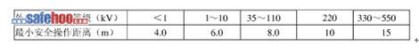 根據(jù)《施工現(xiàn)場臨時用電安全技術規(guī)范》要求(見下表),基本滿足最小安全操作距離要求。