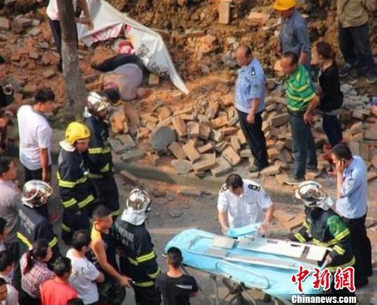 據(jù)現(xiàn)場(chǎng)圍觀群眾介紹,下午三點(diǎn)左右聽(tīng)到一聲巨響,隨后看見(jiàn)正在施工中的凱爾楓尚住宅小區(qū)外圍墻倒了一大片?,F(xiàn)場(chǎng)的施工人員說(shuō),可能是圍墻內(nèi)的挖掘機(jī)施工時(shí)造成了圍墻的倒塌,恰巧有一路人經(jīng)過(guò),被埋在倒塌的磚頭里。