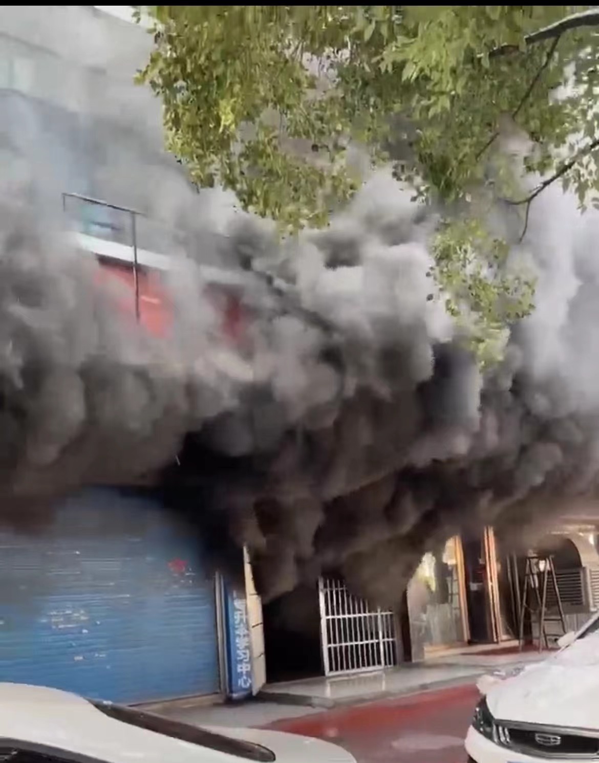 根據(jù)事發(fā)地周圍群眾下午所拍攝的視頻畫面顯示,強烈的濃煙不斷從一樓某門口噴涌而出。門口掛著的牌子上大部分字跡被濃煙遮蓋,僅能看到的字跡為“專升本學習中心”。滾滾濃煙吞沒了二樓。