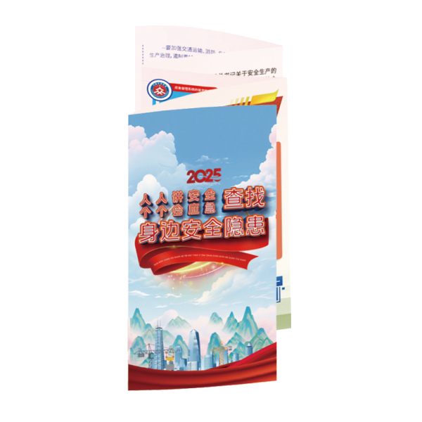 為方便安全生產(chǎn)宣傳活動,我們編制了系列安全生產(chǎn)折頁,內(nèi)容生動活潑,實用性強,內(nèi)容涵蓋面廣,為您普及日常生產(chǎn)與生活中的安全知識。本套折頁與掛圖形式結(jié)合,使安全教育更加到位,彌補安全宣教掛圖和圖書教材的不足,形式新穎,喜聞樂見,便于安全宣教活動發(fā)放,內(nèi)容新,符合國家最新法律法規(guī)和標(biāo)準(zhǔn),具有可讀性,從業(yè)人員一看便懂一看便會,宣教效果立竿見影。