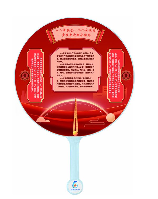 安全扇堅固耐用,圖文并茂,知識點豐富,旨在普及安全生產(chǎn)知識,提高人民群眾安全生產(chǎn)意識。本產(chǎn)品可用于咨詢活動時派發(fā),在潛移默化起到提示安全作用。