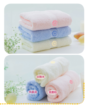 ★素色淡雅,觸感柔軟,一觸驚喜。★精致提花工藝,更顯品質(zhì)。★高效深層清潔皮膚,美容護膚。★擰后晾曬不滴水,清潔衛(wèi)生。★經(jīng)久耐用,時尚大方。