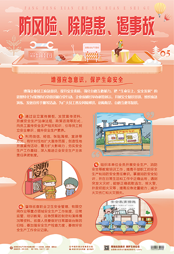 本套掛圖將2019 安全月主題凝結(jié)成精煉的語(yǔ)言,溫馨的畫面,主題突出、層層遞進(jìn),從而加深對(duì)安全發(fā)展的體會(huì)和理解。具有營(yíng)造安全生產(chǎn)月氣氛、增強(qiáng)員工應(yīng)急意識(shí)、促進(jìn)安全生產(chǎn)的作用。