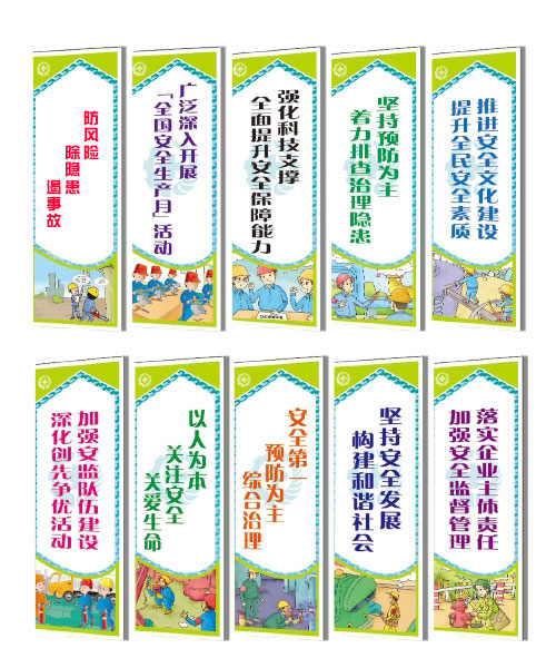 安全標(biāo)語,通過朗朗上口的文字和逗趣的漫畫,闡述了企事業(yè)單位員工在生產(chǎn)工作及生活中應(yīng)該注意的各項(xiàng)安全事項(xiàng),能增強(qiáng)員工的安全意識。標(biāo)語圖文并茂,色彩鮮艷,使用便捷,能很好起到宣傳安全文化的作用。同時(shí)可以美化環(huán)境,適合張貼在宣傳欄、柱子、辦公室、廠房車間、會議室、會客廳、培訓(xùn)教室、倉庫、過道走廊等場所。