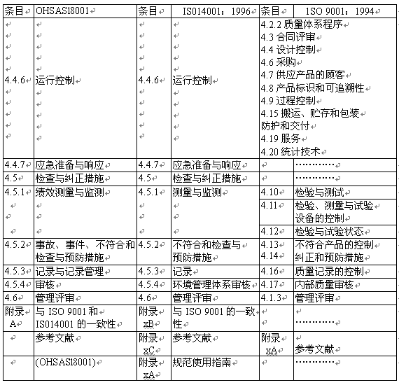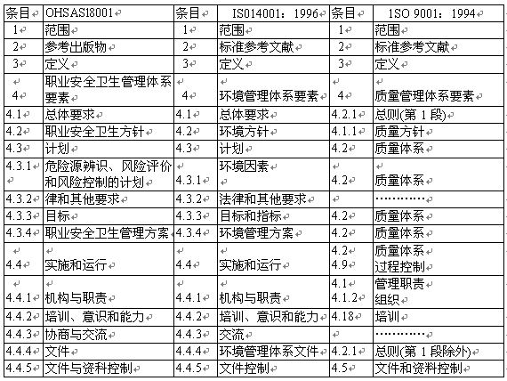 OHSAS l8001與ISO 9001:1994和ISO 14001:1996標(biāo)準(zhǔn)之間的相關(guān)性