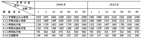 4.1 立姿人體尺寸(見圖1、表1、表2)。