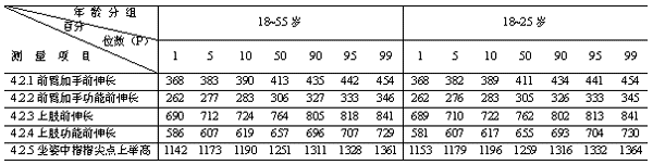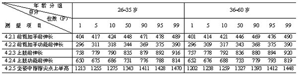表6 跪姿、俯臥姿、爬姿人體尺寸百分位數(shù)(女) mm