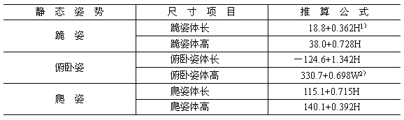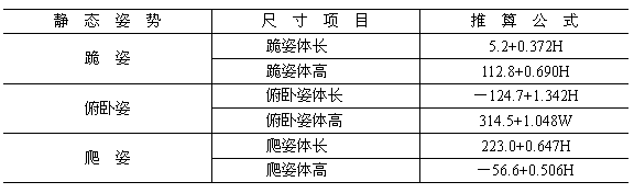 跪姿、俯臥姿、爬姿人體尺寸的計算