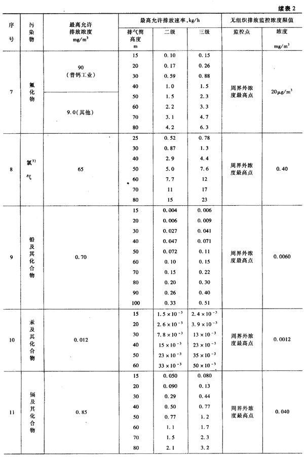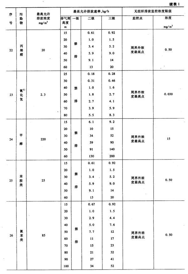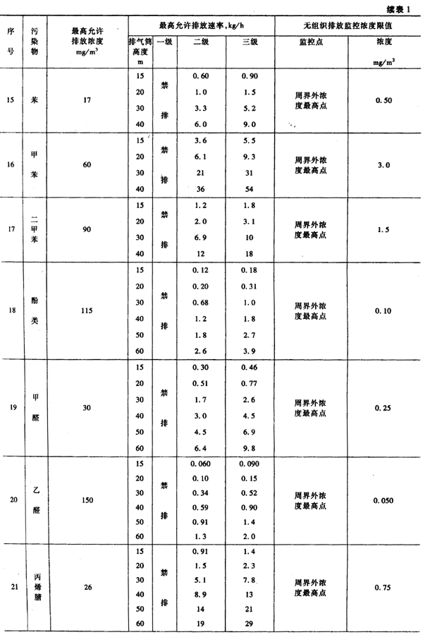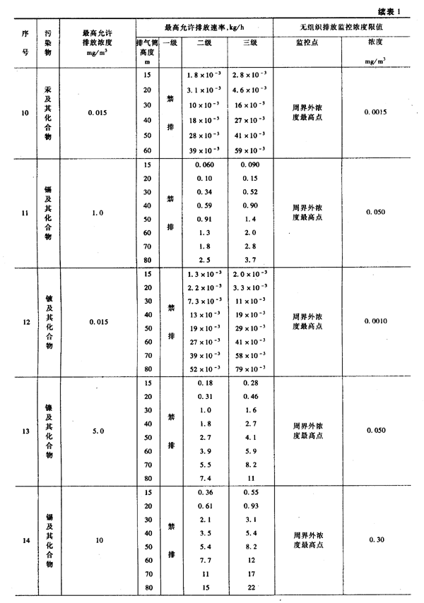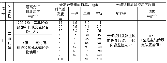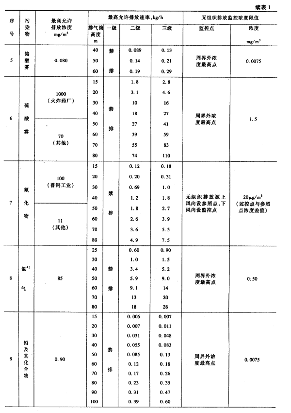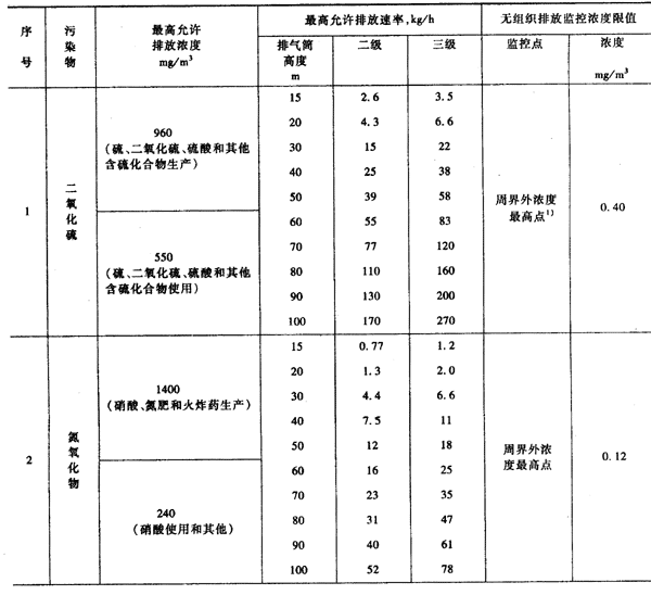 本標(biāo)準(zhǔn)規(guī)定的最高允許排放速率,現(xiàn)有污染源分為一、二、三級(jí),新污染源分為二、三級(jí)。按污染源所在的環(huán)境空氣質(zhì)量功能區(qū)類(lèi)別,執(zhí)行相應(yīng)級(jí)別的排放速率標(biāo)準(zhǔn),即: