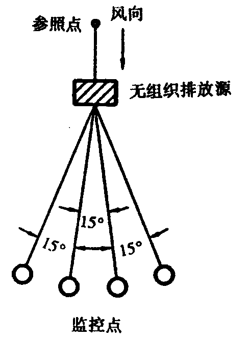 C3.1.1 于無(wú)組織排放源的上風(fēng)向設(shè)參照點(diǎn),下風(fēng)向設(shè)監(jiān)控點(diǎn)。
