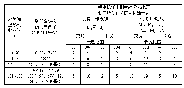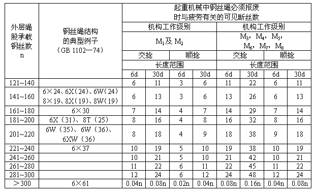 摘自《起重機(jī)械用鋼絲繩檢驗(yàn)和報(bào)廢實(shí)用規(guī)范》(GB5972—86)