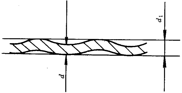 出現(xiàn)波浪形時(shí),在鋼絲繩長(zhǎng)度不超過25d的范圍內(nèi),若d1≥4d/3,則鋼絲繩應(yīng)報(bào)廢。