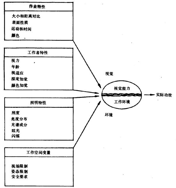 下圖規(guī)定了在視覺環(huán)境中影響工作者視覺功效的主要參數(shù)。