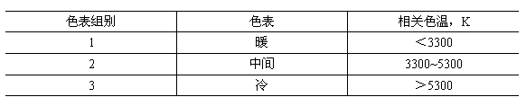表3 光源的色表分組