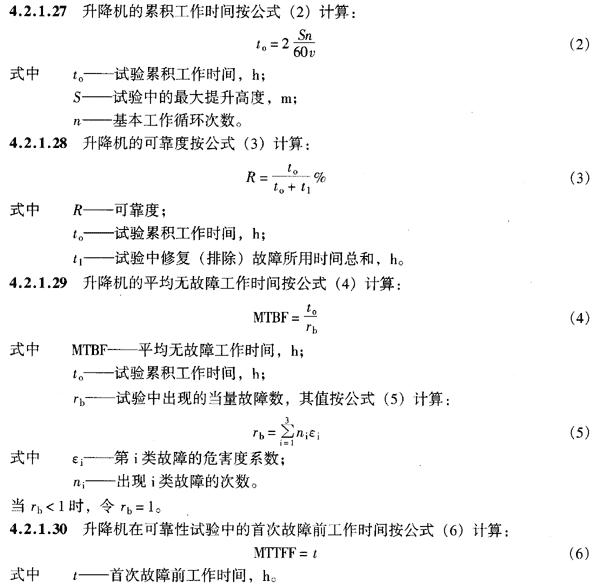 4.2.1.26 升降機的可靠性指標為: