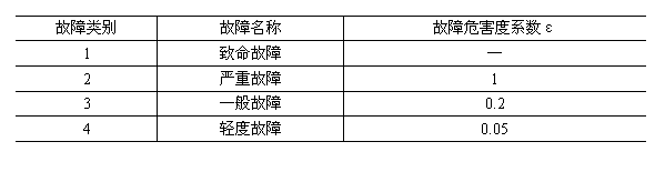 故障危害度系數(shù)值 表4