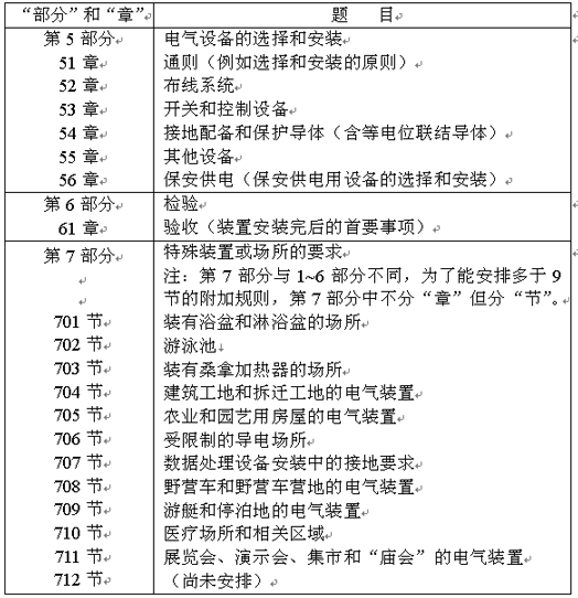 GB 16895《建筑物電氣裝置》的序號系統(tǒng)和方案
