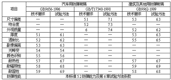 用途不同的防彈玻璃技術(shù)要求應(yīng)符合表2相關(guān)條款的規(guī)定。