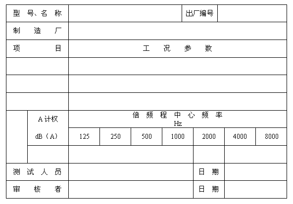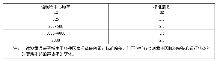 A計(jì)權(quán)聲功率級(jí)的標(biāo)準(zhǔn)偏差約為2dB。倍頻程聲功率級(jí)的標(biāo)準(zhǔn)偏差見表1。